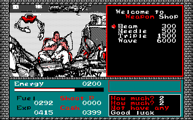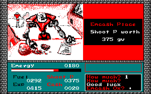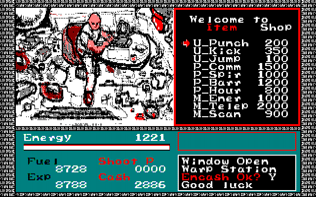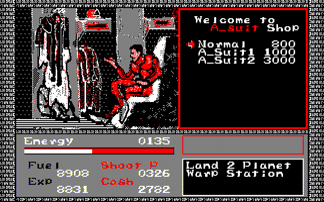 ステーションの中では、Energyの回復、Fuelの補給、Shoot.PからCashへの両替、アイテム(武器、スーツ、消費アイテムなど)の購入、そしてゲームのセーブ(有料)が行えました。