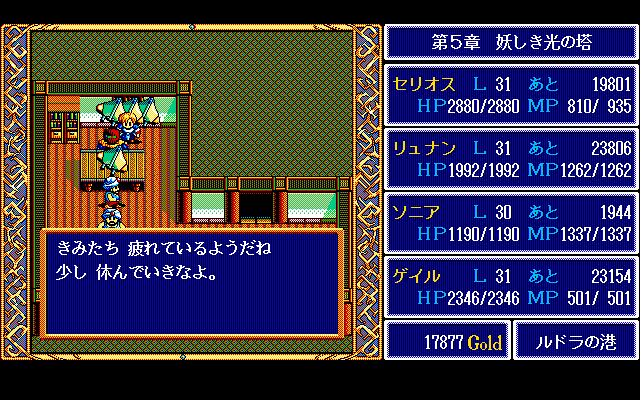 ハリーに話しかけたら、ベッドを使って休ませてくれた(HP/MP全回復)。